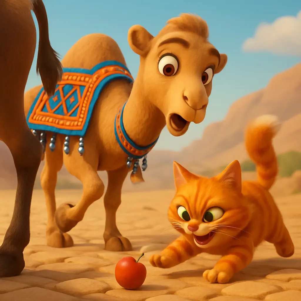 Aghilas se mit en action, la poursuivant avec une énergie enjouée, bondissant et culbutant de joie. Lalla Mamina fit tinter sa petite clochette et Tiwizi rigola, tous deux riant en regardant le chat espiègle s’élancer après la pomme roulante.