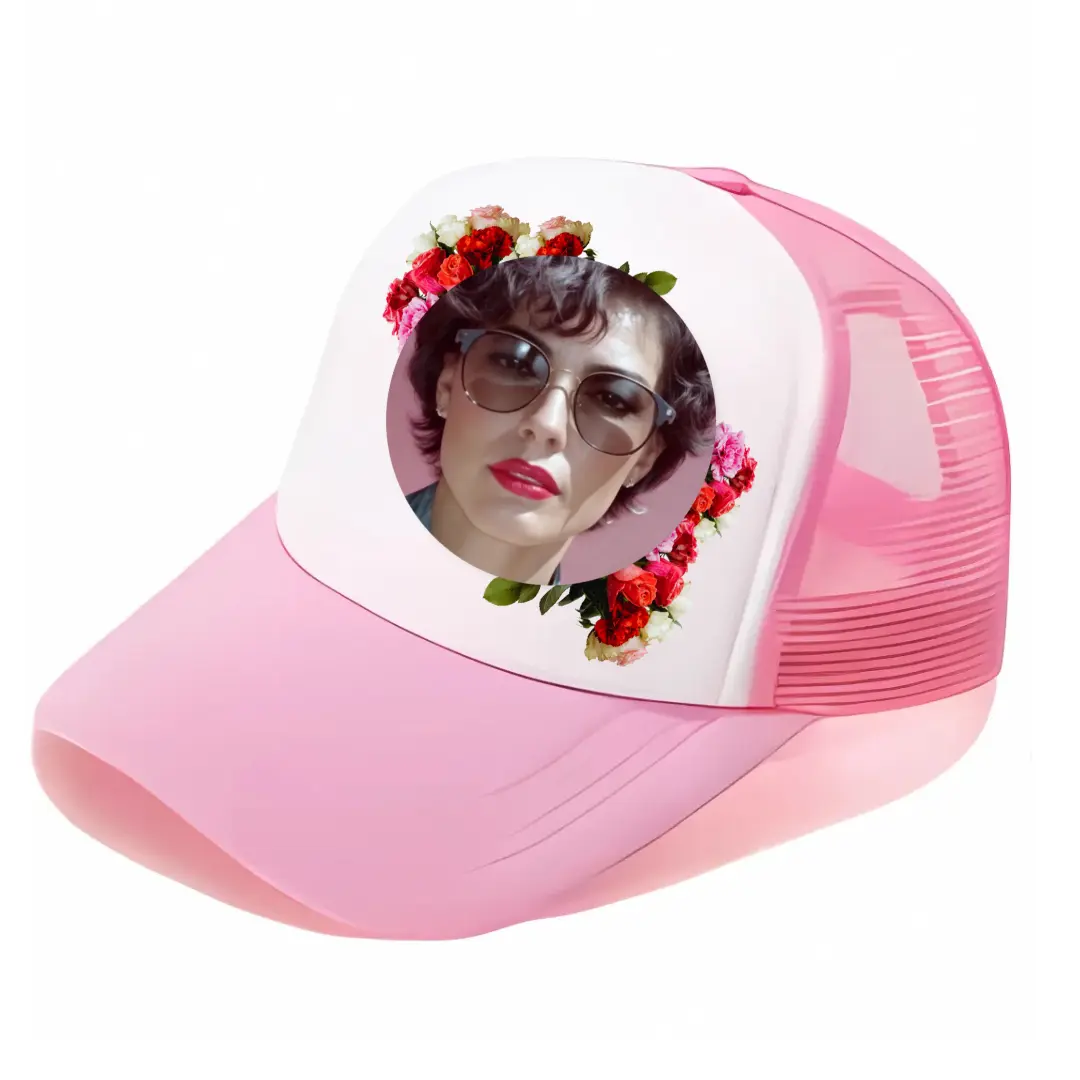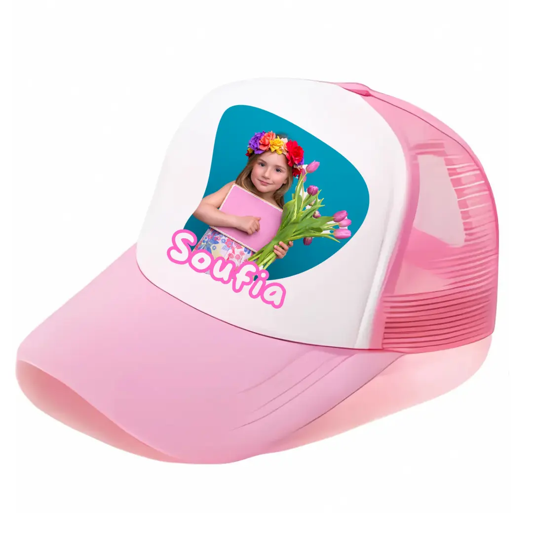 Casquette 100% polyester. Couleur rose. Taille: adulte. Grâce à son filet d’aération, elle assure une excellente respirabilité, tandis que sa fermeture ajustable par bouton-pression garantit un maintien parfait pour toutes les tailles. Personnalisable sur toute la partie devant, elle met parfaitement en valeur votre logo, photo, dessin ou message.