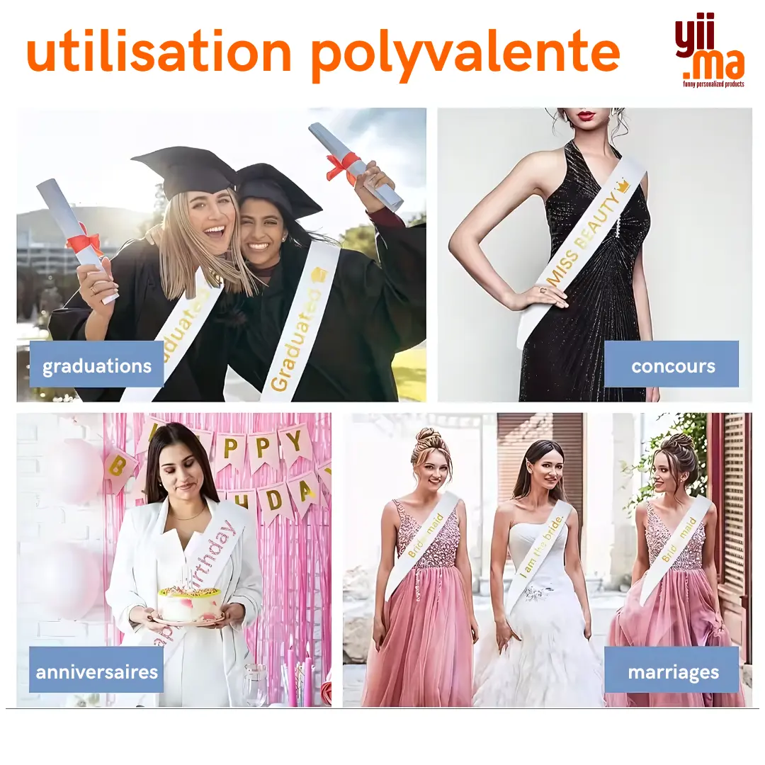 Cette ceinture en satin blanc allie élégance et visibilité. Douce et légère, elle se porte confortablement et peut être personnalisée avec votre logo, texte ou design, pour marquer vos événements d’une touche unique et professionnelle.