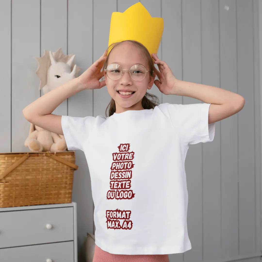 T-shirt (6 a), 100% coton, blanc, personnalisable